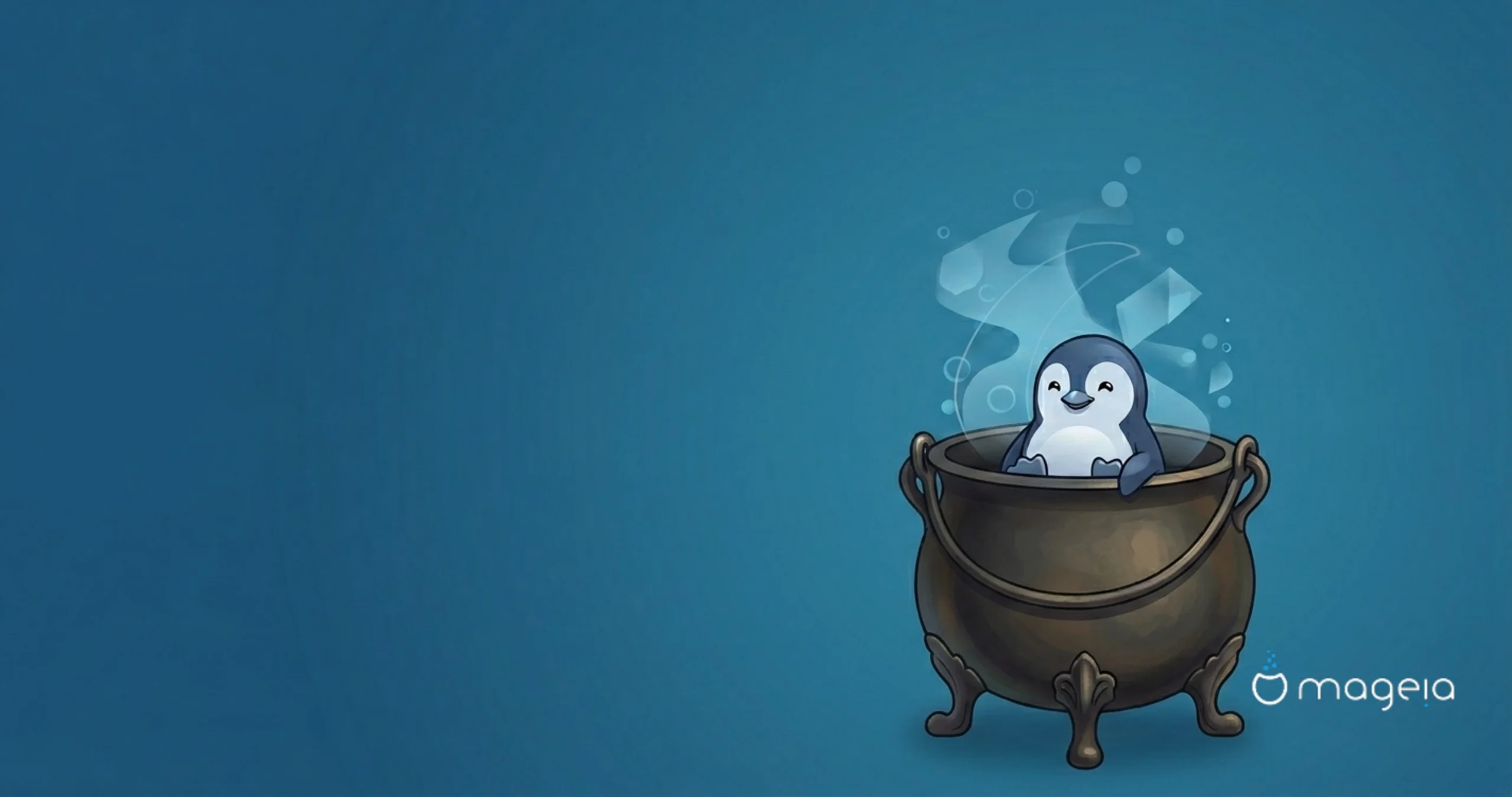 Pro hlavní pozadí vybíráme digitální abstraktní umělecké dílo složené z barev loga Mageia. Aby se dalo snadno přizpůsobit různým poměrům stran bez ztráty kvality obrazu, mělo by mít minimální rozlišení 4096 x 2160 px. Vzhledem k tomu, že se kvalita a velikost monitorů v průběhu let zvyšuje, měli bychom mít hlavní tapetu, která pokryje rozlišení 4K bez ztráty kvality.